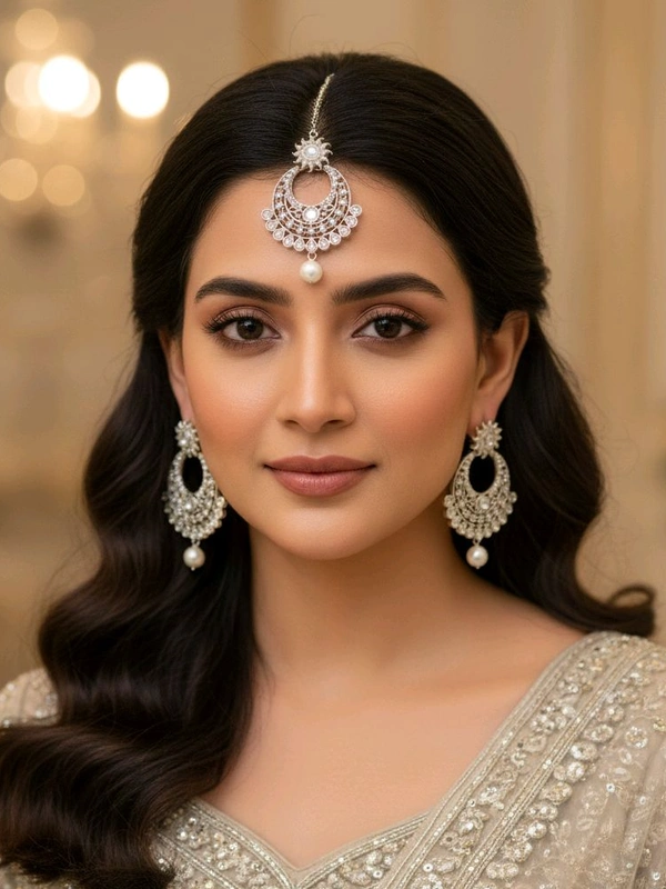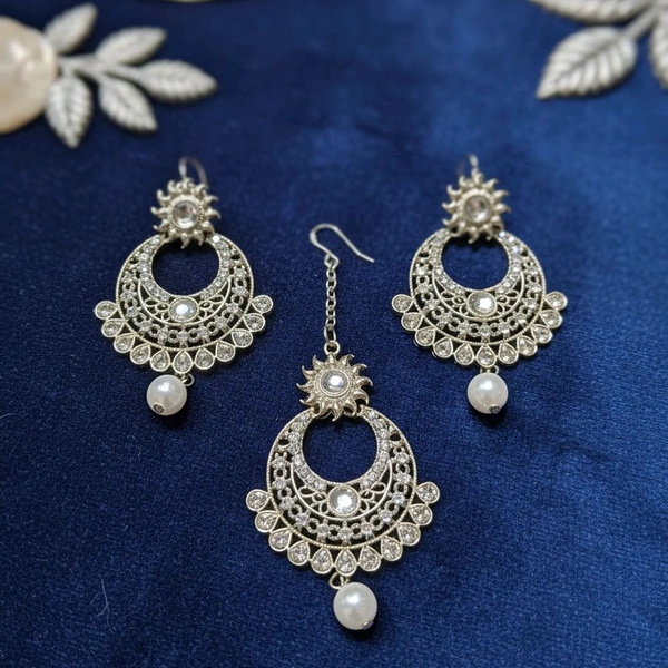 Silver Earrings Mangtika Set