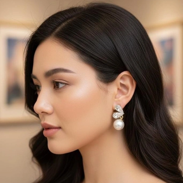 Silver stone earring
