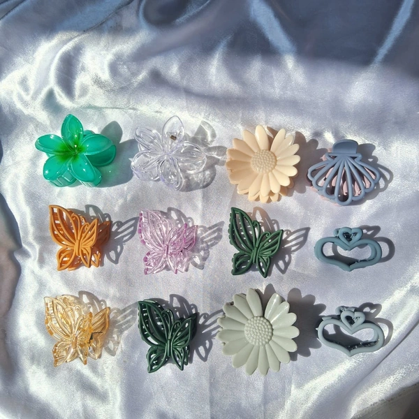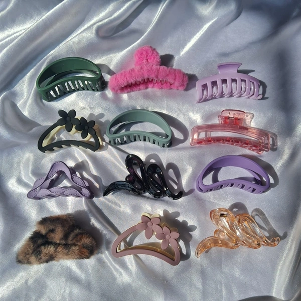 Get a surprise pack of 6 trendy hair claws selected at random from the designs shown. Cute, durable, and perfect for everyday styling.