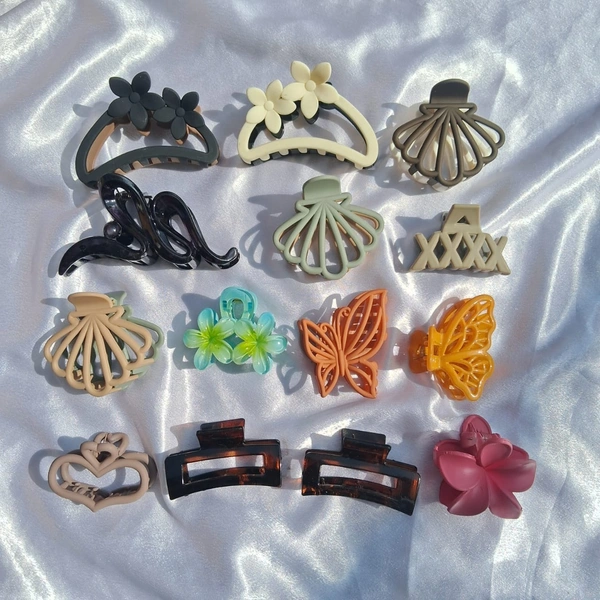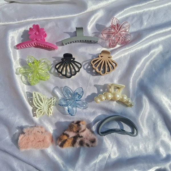 Get a surprise pack of 6 trendy hair claws selected at random from the designs shown. Cute, durable, and perfect for everyday styling.